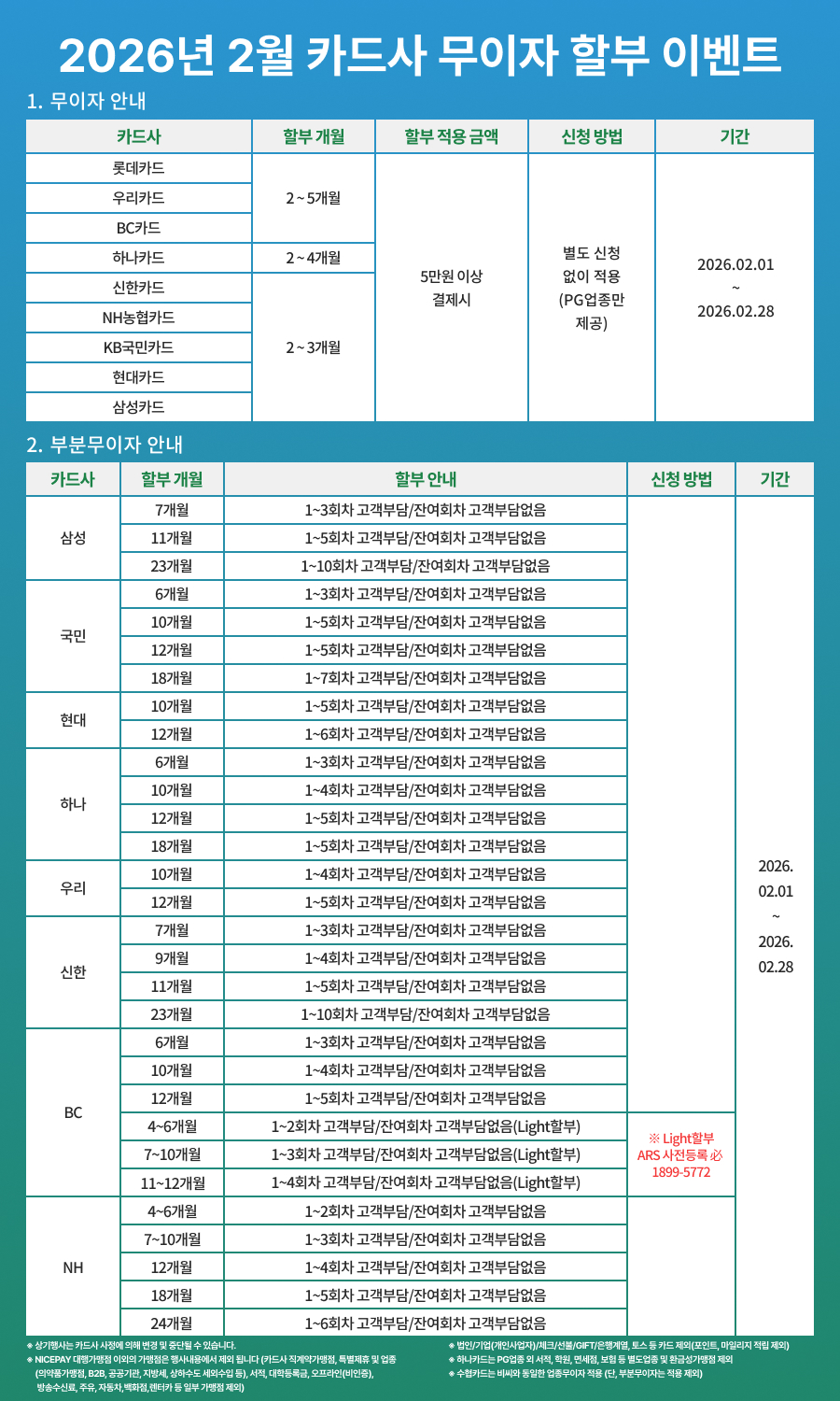 26년 2월 카드 무이자 할부 안내입니다.